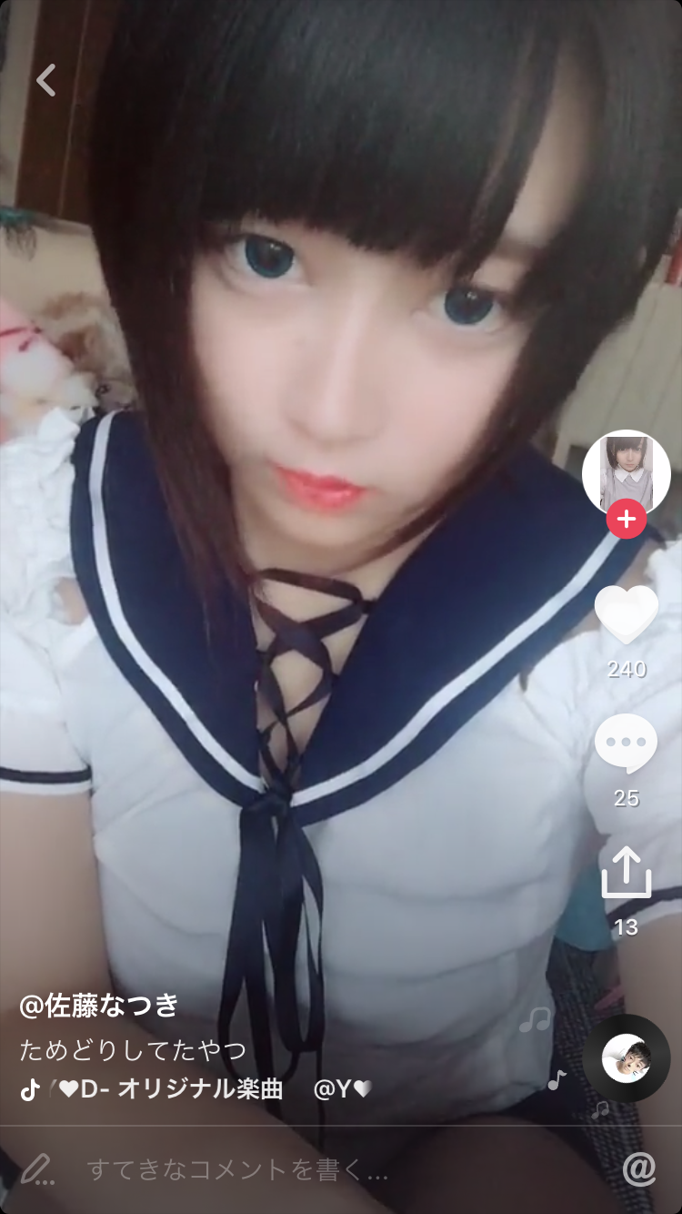 更新日時 2019-06-24 12:00:59 ユーザー名 佐藤なつき TikTok ID xx_ooxx ファン 50K ハート 301K