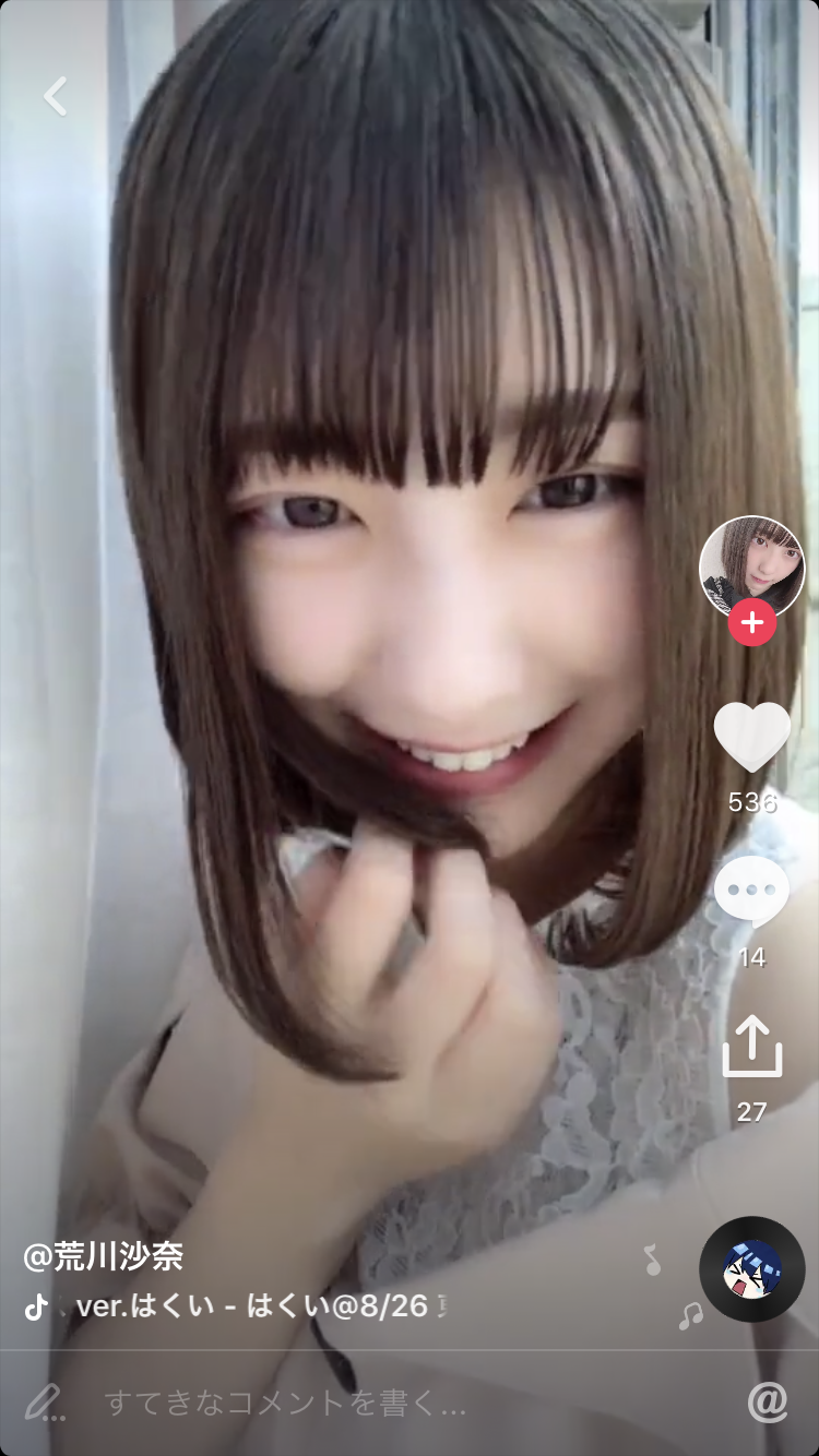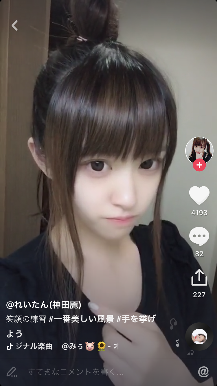 更新日時 2018-08-18 04:53:00 ユーザー名 れいたん(神田麗) TikTok ID sana_arakawa ファン 17K ハート 44K -