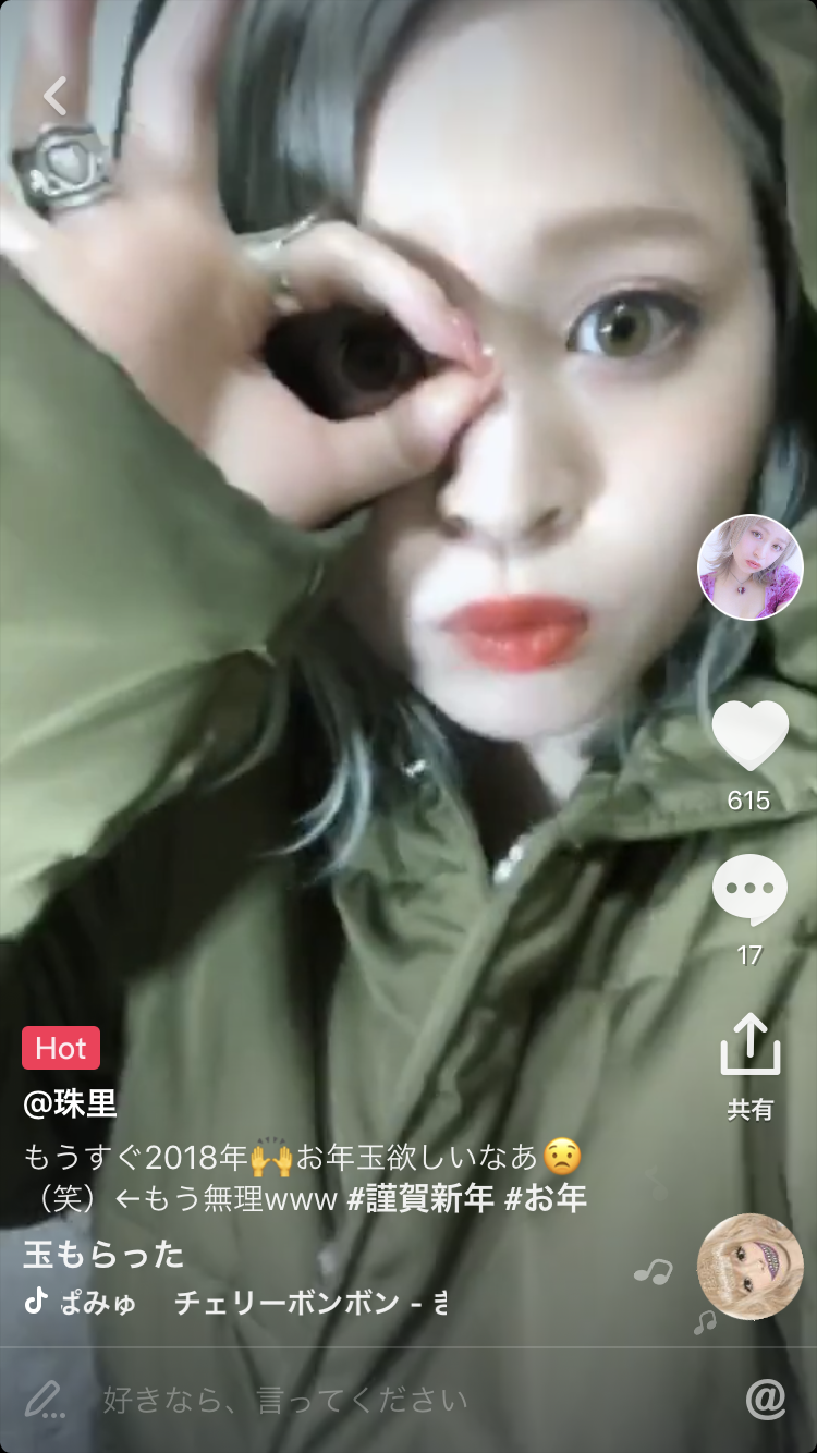 更新日時 2018-01-31 09:54:36 ユーザー名 珠里 TikTok ID juripuu888 ファン 20K ハート 42K