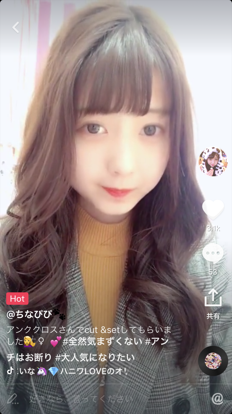 更新日時 2019-03-04 11:42:37 ユーザー名 ちゃんえり(吉永江利) TikTok ID chaneri_ki ファン 50K ハート 162K -