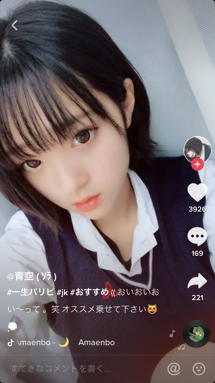 更新日時 2019-04-16 01:06:01 ユーザー名 青空(ソラ) TikTok ID soratapi ファン 91K ハート 344K